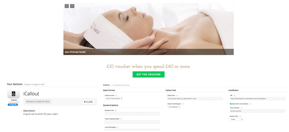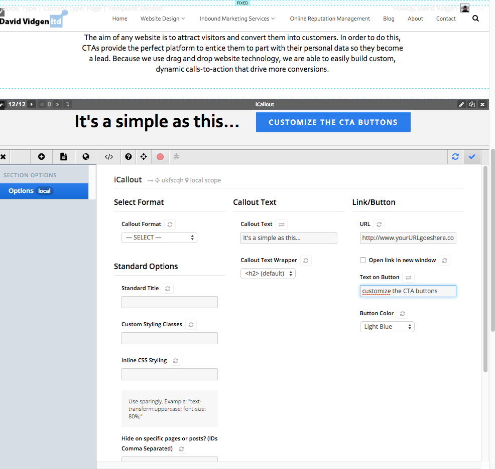 With our drag and drop technology, we are able to build custom CTAs in a matter of seconds. We simply drag the CTA where you would like it to appear on the page and then we customise the CTA text, URL, Button Text and Button Colour.